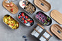 Boxy mají silikonový okraj, který je navržen pro šetrnější spojení mezi bambusovým víkem a ocelí. Snadněji se také čistí. Silikonový pásek bezpečně udrží váš oběd v boxu.