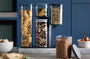 Tento chytrý systém úložných kuchyňských dóz je vybaven stojanem, který umožňuje snadný přístup ke každé dóze bez ohledu na její umístění.