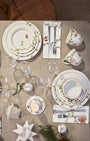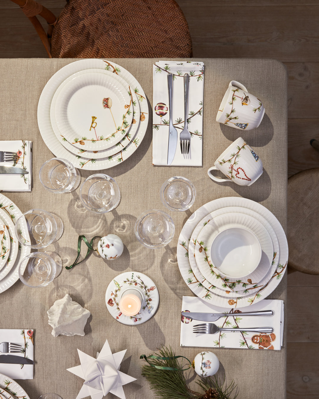 Kolekce Hammershøi od značky Kähler získala nádech vánočního kouzla také díky krásným vánočním ubrouskům. Ubrousky jsou zdobeny vánočními motivy, jako jsou vánoční srdce, perníčky, trumpety, bubínky nebo chaloupky, zatímco zelené větvičky vytvářejí sjednocující prvek celého designu. Vánoční ubrousky Hammershøi Christmas propůjčují celému stolu vánoční atmosféru a skvěle ladí jak s klasickým bílým, tak s vánočním nádobím Hammershøi.