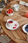Porcelánovou misku o průměru 12 cm zdobí dozrávající jahody, větvičky borůvek a hravý poetický motýl. Autorkou akvarelových ilustrací je umělkyně Rikke Jacobsen, která se při tvorbě inspirovala kouzelnými tvary, barvami a atmosférou dánského léta.