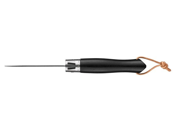 Rukojeť z prvotřídního ebenového dřeva je doplněna poutkem z recyklované kůže, zakončeným nerezovým nýtem pro čistý a elegantní vzhled. Nerezová čepel o délce 7 cm se zaoblenou špičkou působí bezpečně a zároveň se snadno udržuje. Vyrobeno ve Francii.