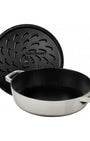 Malé inovované hroty pod poklicí zaručují plynulou cirkulaci a kondenzaci vodní páry, vytváří ideální podmínky pro pomalé vaření, perfektní pro dušení, opékání, pečení i smažení. Zkondenzovaná pára se rovnoměrně vrací zpět do nádoby a připravovaný pokrm je tak automaticky podléván, což zabraňuje vysušování pokrmů při vaření a pečení a současně tento proces dodává jídlu autentickou, intenzivní chuť. Přední šéfkuchaři milují lité nádobí Staub pro jeho schopnost držet teplo, zvyšování chuti a praktickou nerozbitnost.