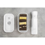 Svačinový box je velmi lehký a dokonale vzduchotěsný a tedy i vodotěsný, takže si můžete s sebou do práce na oběd vzít nejen čerstvý zeleninový salát, ale i polévku z červené čočky s kokosovým mlékem, stejně jako krůtí steak s neloupanou rýží. Jídlo v boxu můžete rovnou i ohřát v mikrovlnné troubě.