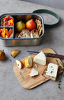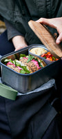 Naturally antibacterial bamboo lid can be used as a cutting board sandwiches or as a serving board to serve your delicious food on later.