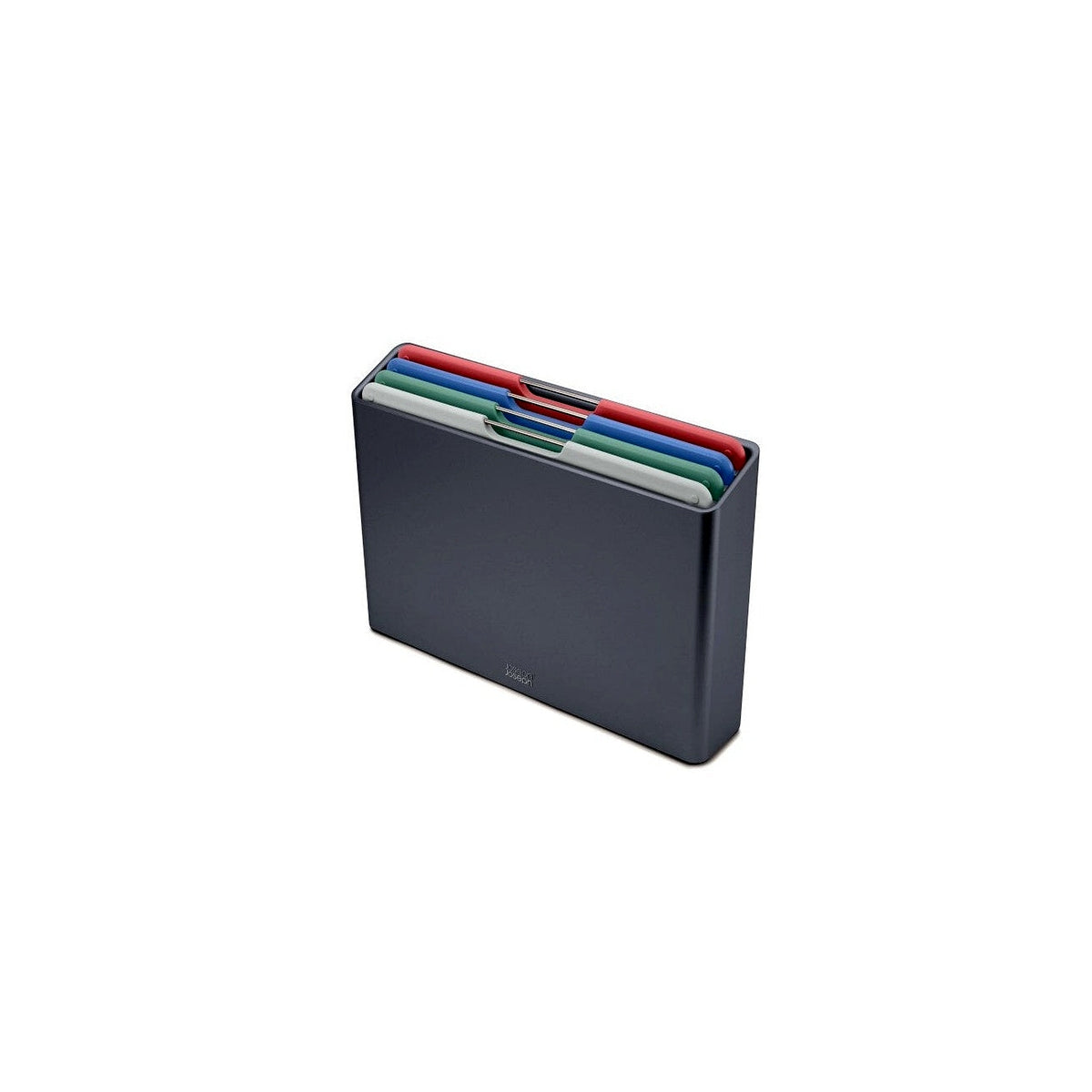 The preparation of every great meal starts with a cutting board, so inJoseph Joseph designed the Folio cutting board set to make food preparation more efficient and enjoyable. The cutting board set includes 4 colour-coded cutting boards with a textured surface suitable form for knives and non-slip feet for safer slicing, chopping and dicing. Stainless steel handles make it easy to select the cutting board you need from the storage rack.