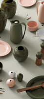 The stylish and elegant Hammershøi collection from Danish brand Kähler is inspired by one of the most talented and famous designers in the history of the brand: Svend Hammershøi. He joined Kähler in 1893 and became famous for his designs with strong contours and grooves. These grooves became the inspiration for designer Hans-Christian Bauer when he created the Hammershøi series in 2015 as a tribute to the great master of the Kähler brand. The Hammershøi collection has gained iconic status and is today a modern classic that appeals to a wide range of people with an interest in design. Clean, minimalist lines and pleasant rounded shapes give this collection a timeless elegance in line with the tradition of Scandinavian design and Svend Hammershøi's design vision. The collection includes plates of all sizes, mugs, jugs, bowls, vases and much more. The common feature of all products from the Hammershøi collection is that they are created by hand and are characterized by the authenticity and quality that characterizes Kähler's diverse cultural heritage and long tradition of handcrafting.