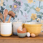 The Home To Roost collection by MASON CASH features a range of kitchenware and storage containers in a charming, rustic design inspired by nature and country living. The collection includes a variety of mixing bowls, food storage containers and kitchen tools, which are decorated with delicate illustrations of birds, flowers and leaves.