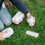 The Monbento Cooly kids drinking bottle has a non-slip silicone base to keep it from slipping and dampen noise when kids put it on the table.