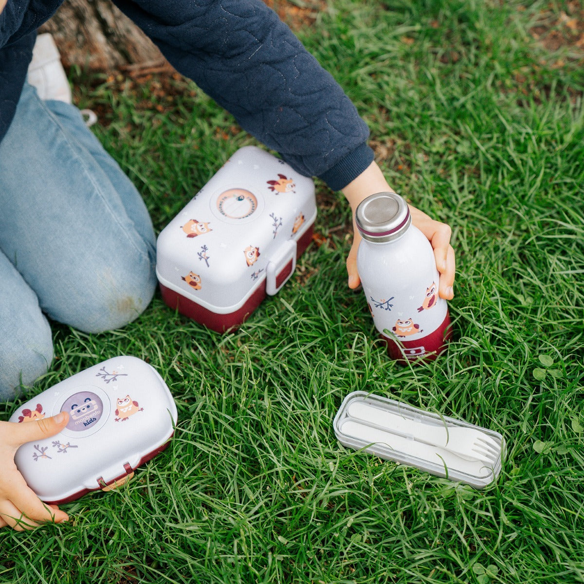 With the Monbento Cooly kids' thermo bottle, little explorers can enjoy their favourite drink at the right temperature wherever they like! It is compact and lightweight, making it easy to carry in a school bag or backpack. The non-slip base helps prevent any accidents. The little owl on the Monbento Cooly baby bottle will teach children to observe the wonders of nature! In addition to the adorable design, the colorful ring on the cap can be removed so you can customize the bottle to your liking.