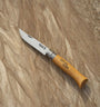 Beech wood is most often used to make Opinel knife handles. Beeches originating from France are hard, durable and easy to work with. The handles have a uniform appearance and their light color ranges from yellow to pink. Beech handles are characterized by the presence of numerous small dark lines.