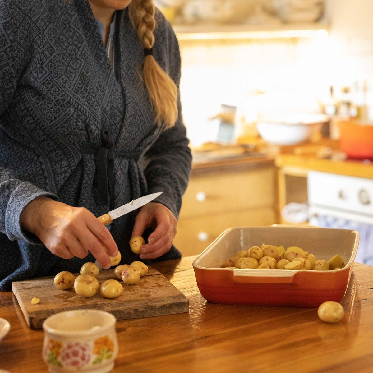 When cutting vegetables, you will certainly appreciate a small, sharp knife for removing vegetable stems or peeling garlic. The Opinel vegetable knife with a lacquered beech handle is exactly that.