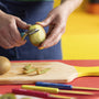 Opinel Les Essentiels Pop80 set includes a paring knife, serrated knife, vegetable knife and peeler.The slicing knife is suitable for cleaning and slicing vegetables, fruits and smaller pieces of meat.The serrated knife is ideal for slicing soft fruits, vegetables and hard-boiled eggs. The vegetable knife has a rounded blade and serrated edge. The peeler is suitable for right and left-handed users.