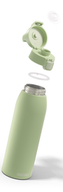 The wide neck makes the inside of the bottle easy to clean. The bottle is also suitable for making protein drinks and through the wide neck you can add mint or lemon to the bottle to make your drink really refreshing in summer. The innovative ONE top cap reliably protects the mouthpiece from dirt. The cap is perfectly tight even when used with carbonated drinks and can be opened conveniently with one hand at the touch of a button. It is equipped with an effective safety lock against accidental opening, and you can easily carry the bottle by the top of the cap or hang it on your backpack.Take this functional and stylish bottle on your next outdoor adventure or city trip. That way you'll always have a cool and refreshing beverage on hand, or a hot one if needed.