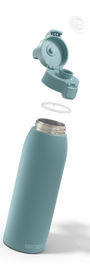 The wide neck makes the inside of the bottle easy to clean. The bottle is also suitable for making protein drinks and through the wide neck you can add mint or lemon to the bottle to make your drink really refreshing in summer. The innovative ONE top cap reliably protects the mouthpiece from dirt. The cap is perfectly tight even when used with carbonated drinks and can be opened conveniently with one hand at the touch of a button. It is equipped with an effective safety lock against accidental opening, and you can easily carry the bottle by the top of the cap or hang it on your backpack.Take this functional and stylish bottle on your next outdoor adventure or city trip. That way you'll always have a cool and refreshing beverage on hand, or a hot one if needed.
