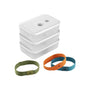 After preparing food at home using the vacuum pump, you may not be able to reseal the container at the office or school. This is exactly what the elastic bands are designed for. Simply place one of the three different coloured elastic bands around the jar and it will remain securely closed even without a vacuum.