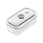 The frost- and heat-resistant borosilicate glass container has a plastic lid with a double silicone seal and an easy-to-use vacuum valve, which you simply attach the Zwilling Fresh & Save vacuum pump to and with one push, suck out the air in seconds. The vacuum created after extracting excess air will extend the freshness of stored food up to 5 times.