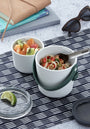 Dve samostatné nádoby, ktoré uľahčujú prenášanie raňajok alebo obeda na cestách.