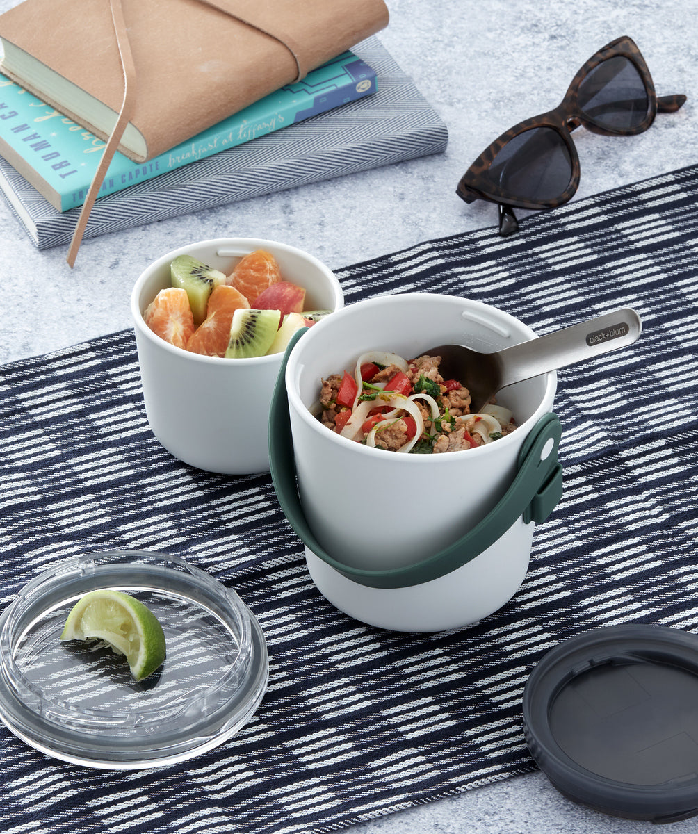 Black+Blum Original dvojdielna nádoba na desiatu s lyžičkou 0,9 l, olivová