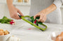 Tento praktický nástroj vám pomôže rýchlo a ľahko nakrájať ovocie alebo zeleninu na rovnomerné plátky, pričom prsty zostanú v bezpečnej vzdialenosti od ostrého noža z nehrdzavejúcej ocele.