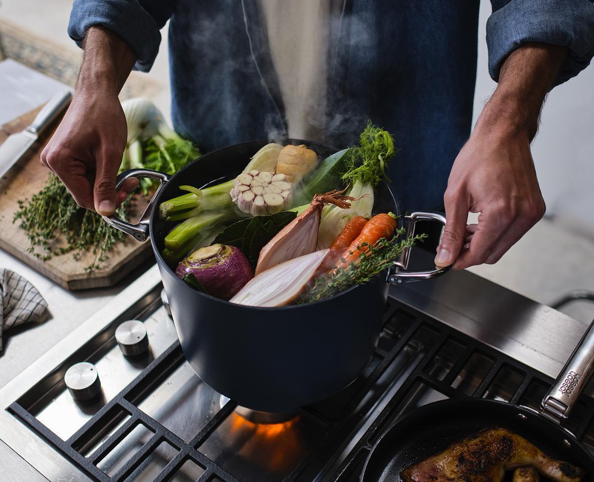 Veľké rukoväte z nehrdzavejúcej ocele sú tiež stohovateľné, čo umožňuje obojručné ovládanie väčších panvíc a hrncov. Space je znovuobjavený kuchynský riad profesionálnej kvality.