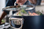 Už žiadne neprehľadné kuchynské skrinky, žiadne kompromisy v oblasti použiteľnosti alebo výkonu. Inovatívna skladacia rukoväť s patentovanou technológiou SwingLock™ bola starostlivo navrhnutá pre odolnosť a jednoduché skladovanie. Vďaka možnosti stohovania ušetríte až 50 % úložného priestoru v zásuvkách a kuchynských skriniach.