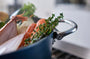 Už žiadne neprehľadné kuchynské skrinky, žiadne kompromisy v oblasti použiteľnosti alebo výkonu. Inovatívna skladacia rukoväť s patentovanou technológiou SwingLock™ bola starostlivo navrhnutá pre odolnosť a jednoduché skladovanie. Vďaka možnosti stohovania ušetríte až 50 % úložného priestoru v zásuvkách a kuchynských skriniach.