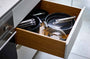 Už žiadne neprehľadné kuchynské skrinky, žiadne kompromisy v oblasti použiteľnosti alebo výkonu. Inovatívna skladacia rukoväť s patentovanou technológiou SwingLock™ bola starostlivo navrhnutá pre odolnosť a jednoduché skladovanie. Vďaka možnosti stohovania ušetríte až 50 % úložného priestoru v zásuvkách a kuchynských skriniach.