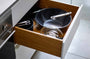 Už žiadne neprehľadné kuchynské skrinky, žiadne kompromisy v oblasti použiteľnosti alebo výkonu. Inovatívna skladacia rukoväť s patentovanou technológiou SwingLock™ bola starostlivo navrhnutá pre odolnosť a jednoduché skladovanie. Vďaka možnosti stohovania ušetríte až 50 % úložného priestoru v zásuvkách a kuchynských skriniach.