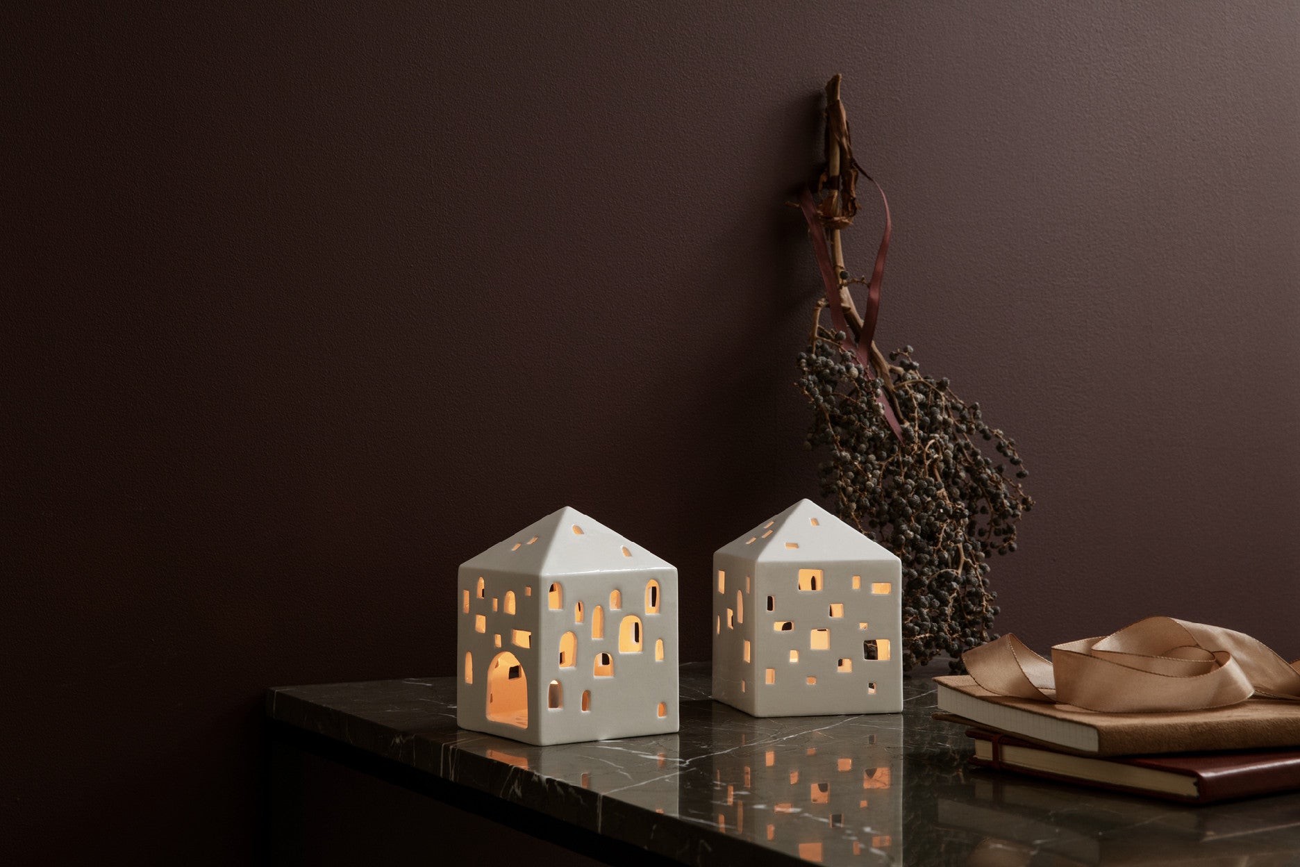 V keramických výrobkoch značky Kähler sa snúbi história dizajnu s modernou dobou. Svietniky v tvare domčeka prinášajú do vašej domácnosti mestskú scenériu, kde teplé svetlo prúdi z mnohých ručne vyrezávaných okienok celého mestečka. Možnosti, ako domčeky naaranžovať, sú nekonečné a každý z nich predstavuje architektonickú cestu časom a priestorom.