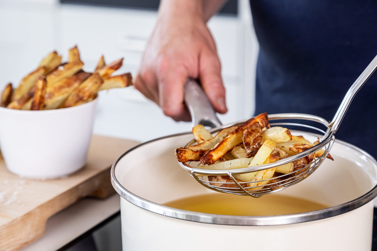 Touto univerzálnou naberačkou KitchenAid ľahko naberiete wontonové knedle, halušky, vyprážané šišky a knedle. Mimoriadne široká naberačka z nehrdzavejúcej ocele s priemerom 13 cm umožňuje rýchle odtekanie tekutín, takže sa skvele hodí na vyprážanie alebo používanie woku.Naberačka je vyrobená z kvalitnej nehrdzavejúcej ocele odolnej voči korózii. Na matnej sivej rukoväti je vyrazené logo KitchenAid.