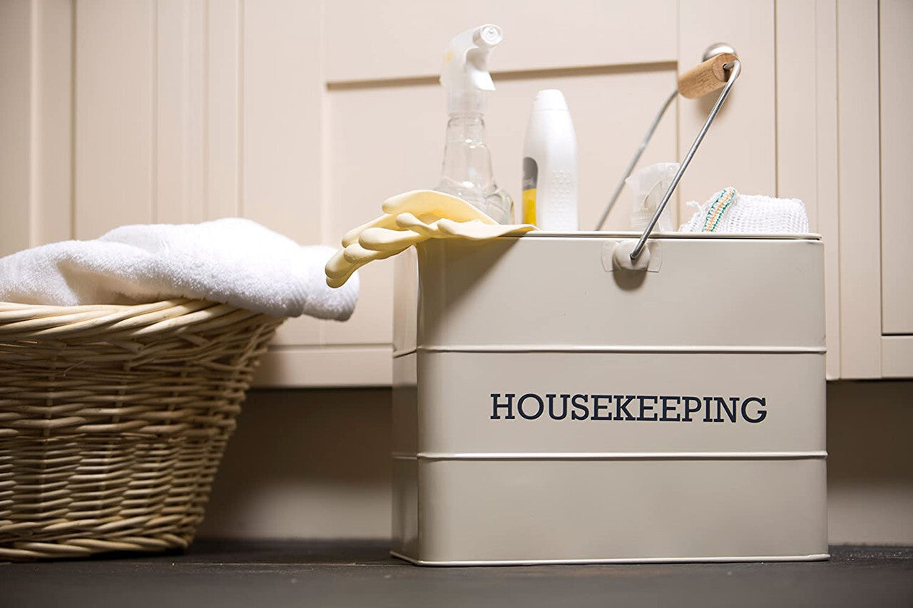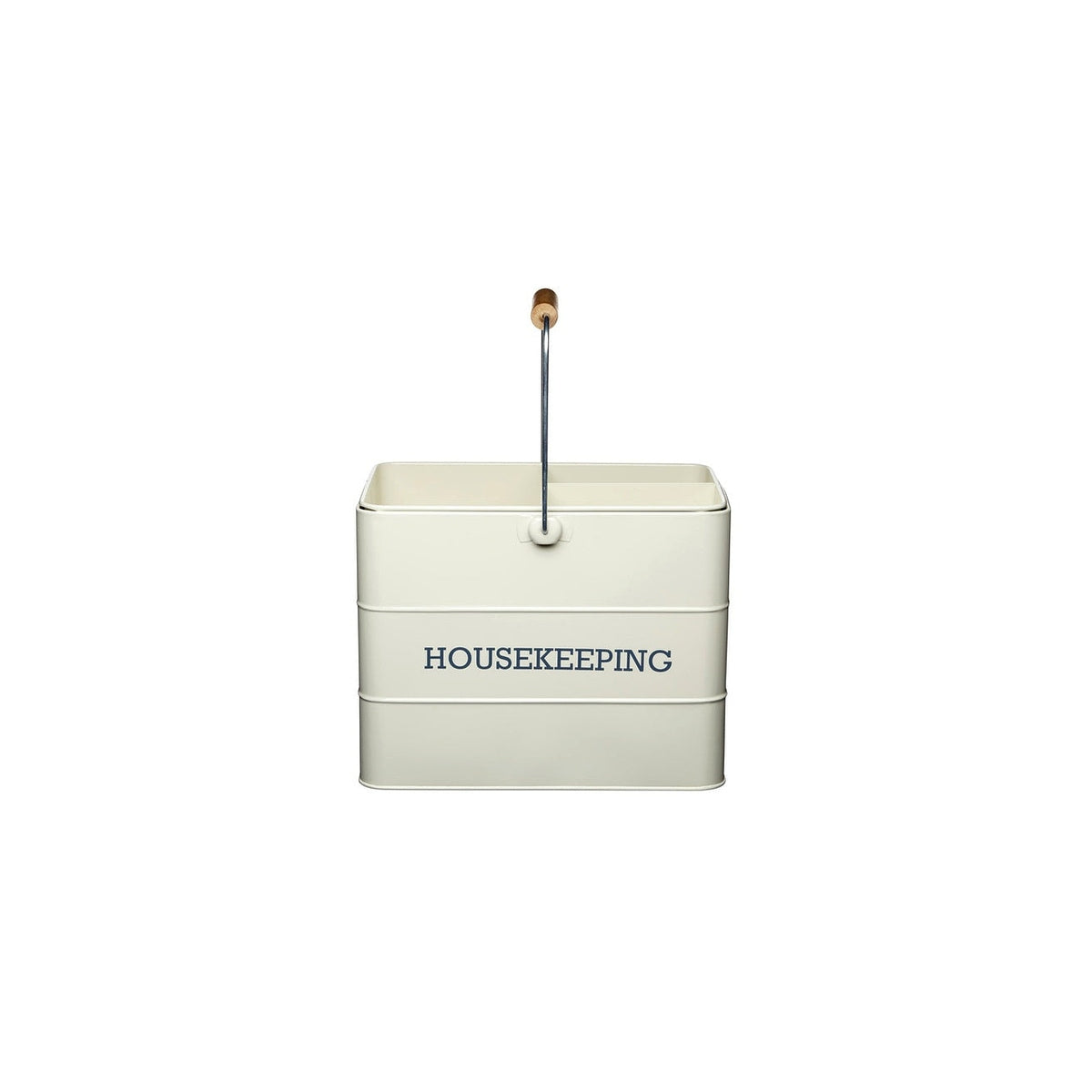 S vedrom na čistenie KitchenCraft Living Nostalgia budete mať pri domácich prácach všetky čistiace prostriedky pohodlne po ruke. Obľúbené vedro vo vintage štýle šetrí miesto a je vhodné do každej kuchyne, kúpeľne alebo technickej miestnosti. Je vybavené odnímateľným zásobníkom s tromi praktickými priehradkami a drevenou rukoväťou na jednoduché prenášanie.Pohodlne sa doň zmestia čistiace prostriedky, kefy alebo špongie, aby ste ich mali pri upratovaní vždy ľahko po ruke. Krémové vedro na upratovanie je na jednej strane zdobené sivým nápisom "HOUSEKEEPING". Či už sa chcete štýlovo pustiť do jarného upratovania alebo sa zbaviť "nudy" pri každodenných povinnostiach, toto praktické prenosné vedro sa vo vašej domácnosti určite bude vynímať.