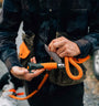 Outdoorový multifunkčný nôž s veľmi silnou čepeľou s hrúbkou 2,7 mm. Môžete s ním odrezávať triesky na oheň aj rezať prírodné alebo syntetické lano. Dodáva sa s vyťahovačom kliešťov, ktorý možno použiť pre ľudí aj zvieratá a umožňuje uchopiť kliešťa bez toho, aby ste ho rozdrvili. Pomocou rotačného pohybu ho ľahko odstránite. Má dva otvory, ktoré možno použiť v závislosti od veľkosti kliešťa. Outdoorový nôž odolný voči poveternostným vplyvom je vybavený aj píšťalkou na prežitie, ktorá funguje za každého počasia a vydáva zvuk s hlasitosťou 110 dB. Rukoväť noža je vyrobená z polyamidu vystuženého sklenými vláknami. Odoláva nárazom, vlhkosti a extrémnym teplotám (-40 °C až +80 °C).