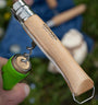 Pro výrobu rukojetí Opinel se nejčastěji používá bukové dřevo. Buky pocházející z Francie jsou tvrdé, odolné a snadno se opracovávají. Rukojeti mají jednotný vzhled a jejich světlá barva se pohybuje od žluté po růžovou. Vyznačují se přítomností četných malých tmavých čar.