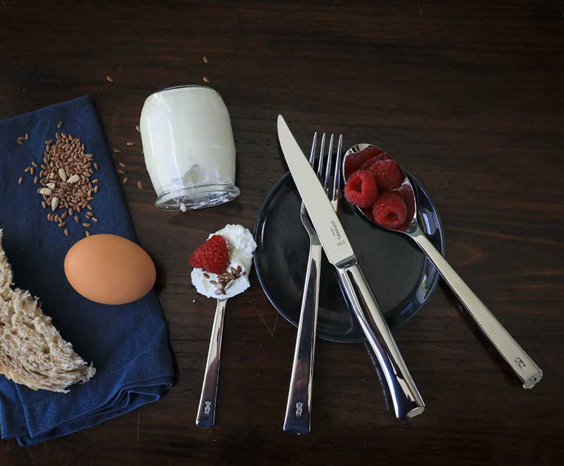 V roku 2021 vytvorilo švajčiarske dizajnérske štúdio BIG GAME pre značku Opinel kolekciu príborov z nehrdzavejúcej ocele s názvom Perpétue, ktorá dokonale spája starodávnu rodinnú tradíciu a súčasný dizajn. Kolekcia nesie meno babičky Josepha Opinel, práve toho muža, ktorý dal Francúzsku jednu z jeho ikon, ktorá nakoniec dobyla svet - zatvárací vreckový nôž Opinel. Kolekcia robustných príborov Perpétue z nehrdzavejúcej ocele obsahuje nôž, vidličku, polievkovú lyžicu a kávovú lyžičku. Je vyrobená z nehrdzavejúcej ocele, čo umožňuje bezproblémové umývanie v umývačke riadu. Nože sú vyrobené z martenzitickej nehrdzavejúcej ocele X20Cr13, ktorá sa vyznačuje vynikajúcou odolnosťou proti korózii vďaka vysokému obsahu chrómu a vysokej pevnosti v ťahu. Ostatné príbory sú vyrobené z austenitickej nehrdzavejúcej ocele X5CrNi18-10, ktorej hlavnou výhodou je vysoká odolnosť proti korózii a vysoká ťažnosť bez straty pevnosti. Môžete ich kombinovať s akýmkoľvek príborom Opinel, ku všetkým sa dokonale hodia.