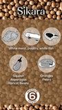 Biele korenie Sikara Premium pochádza z Madagaskaru. Toto biele korenie je doslova srdcom korenia. Zrnká korenia sa zbierajú, keď sú čerešňovo červené a úplne zrelé, potom sa namočia do čerstvej vody a až potom sa opatrne odstráni vonkajšia šupka. Výsledkom je biele korenie s kvetinovou sviežosťou a mätovými tónmi.