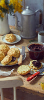 Univerzálny raňajkový nôž, ktorý uľahčuje natieranie masla alebo domáceho džemu na pečivo priamo z nádoby.Jeho zaoblená široká špička je ideálna na rýchle roztieranie a 7,5 cm zúbkovaná časť je ideálna na krájanie chleba, pečiva, klobás alebo vajec.Najdôležitejšie jedlo dňa konečne dostane svoj vlastný nôž!