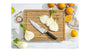 Odporúčame používať pružnú podložku na krájanie (dosku na krájanie) - drevenú, silikónovú alebo plastovú. Príliš tvrdé materiály, ako je sklo, žula alebo keramika, môžu za určitých okolností poškodiť ostrie a reznú hranu.