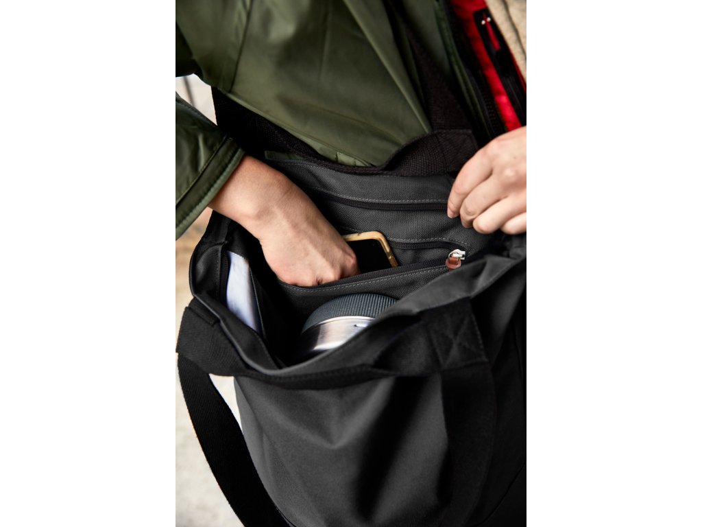 Při výrobě materiálu pro tuto tašku bylo recyklováno až 13 plastových lahví, takže můžete vypadat a cítit se dobře.