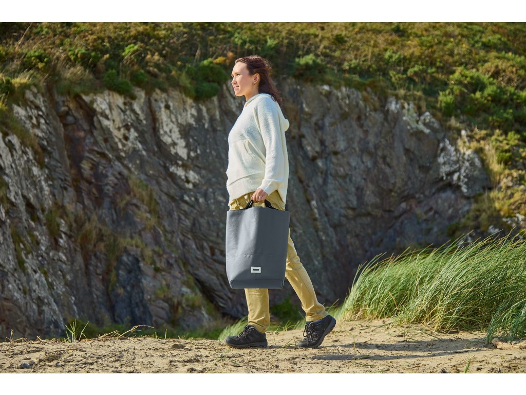 Velkorysý objem 16 l s izolovanou vnitřní přihrádkou, která udrží vše studené nebo mokré odděleně. Dostatečně velká taška na celodenní výlet na pláž, do parku nebo i na přenocování. Super pevná se zesílenými švy a extra širokým pohodlným popruhem na rameno, to vše znamená, že je ideální pro přenášení těžkých potravinových zásob (nebo dokonce několik lahví vína). Díky tkanině vyrobené z 13 recyklovaných plastových lahví je také 100% nepropustná, pevná a všestranná. K dispozici je ve čtyřech barvách a můžete ji kombinovat s odpovídající taškou na ukládání a přepravu potravin.