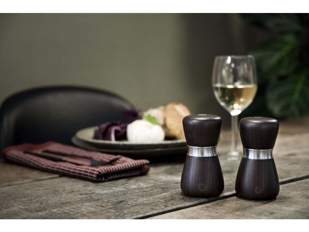Mlynčeky Kyoto sú navrhnuté so zaoblenými krivkami rozdelenými krúžkom z nehrdzavejúcej ocele, čo im dodáva exkluzívny vzhľad. Kontrast medzi mäkkými, organickými, drevenými časťami a precíznosťou povrchu z brúsenej ocele dodáva mlynčeku pocit kvality, ktorý ho odlišuje od tradičných drevených mlynčekov.