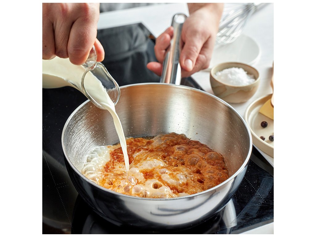 Máte chuť na hladkú a dokonale uvarenú omáčku alebo lesklý slaný karamel? Potom je najlepšie použiť kónickú panvicu. Zaoblený dizajn zaručuje hladké miešanie a mimoriadne vzdušné šľahanie bez námahy. Ideálne na prípravu zložitých omáčok a mnohých ďalších jemných pokrmov. Vďaka jedinečnému sedemvrstvovému materiálu pripravíte dokonalú bearnásovú omáčku alebo vanilkový krém s výrazne zníženým rizikom vzniku hrudiek alebo pripálenia. Teplo je rovnomerne rozložené a nad varením máte dokonalú kontrolu. Panvica je mimoriadne vhodná aj na krátke, ale výkonné smaženie zeleniny.