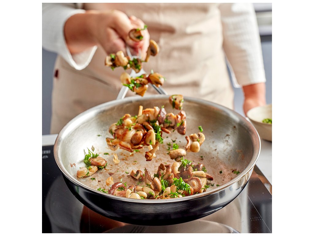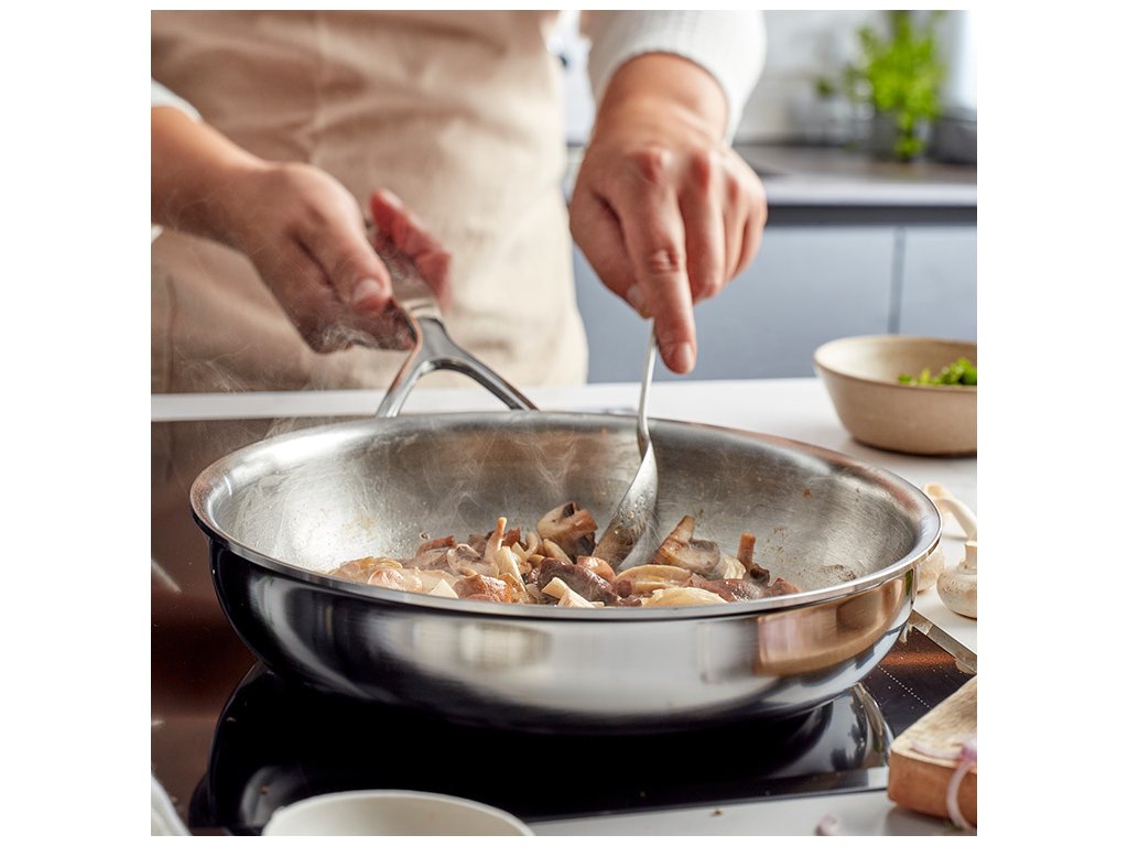 Panvica je vhodná pre všetky typy sporákov a je špeciálne navrhnutá na použitie na indukčných varných doskách. Vďaka technológii TriplInduc® varíte na indukcii až o 30 % rýchlejšie, efektívnejšie a s väčšou kontrolou. Za zmienku stojí aj špeciálny povrch Silvinox®. Ten nielenže zabezpečuje, že si nerezová oceľ dlhšie zachová svoju pôvodnú farbu, ale zároveň uľahčuje jej čistenie, pretože odtlačky prstov a iné nečistoty sa dajú bez problémov odstrániť.