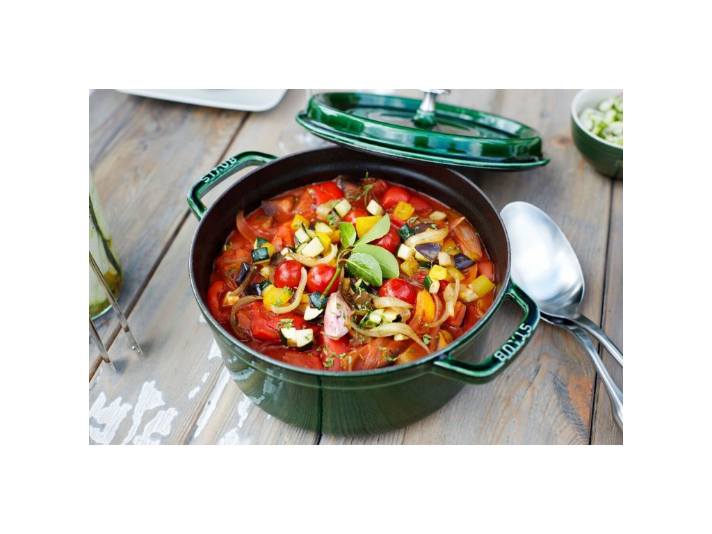 Vyberte si dokonalý liatinový hrniec Staub, keď si môžete vybrať zo širokej škály farieb a objemov. Kuchynský riad z radu Cocotte, ktorý je vhodný na pomalé varenie, dusenie alebo dokonca polievky. Zachovajte vitamíny a chuť zeleniny, šťavnatosť mäsa a prineste na svoj stôl jedinečnú atmosféru smaltovaného riadu. Vďaka smaltovanému povrchu a liatinovému materiálu si riad udrží teplo alebo chlad oveľa dlhšie ako bežný riad. Ďalšou veľmi významnou výhodou liatinového riadu je jeho použitie na všetkých typoch ohrevných plôch vrátane indukcie a rúry.