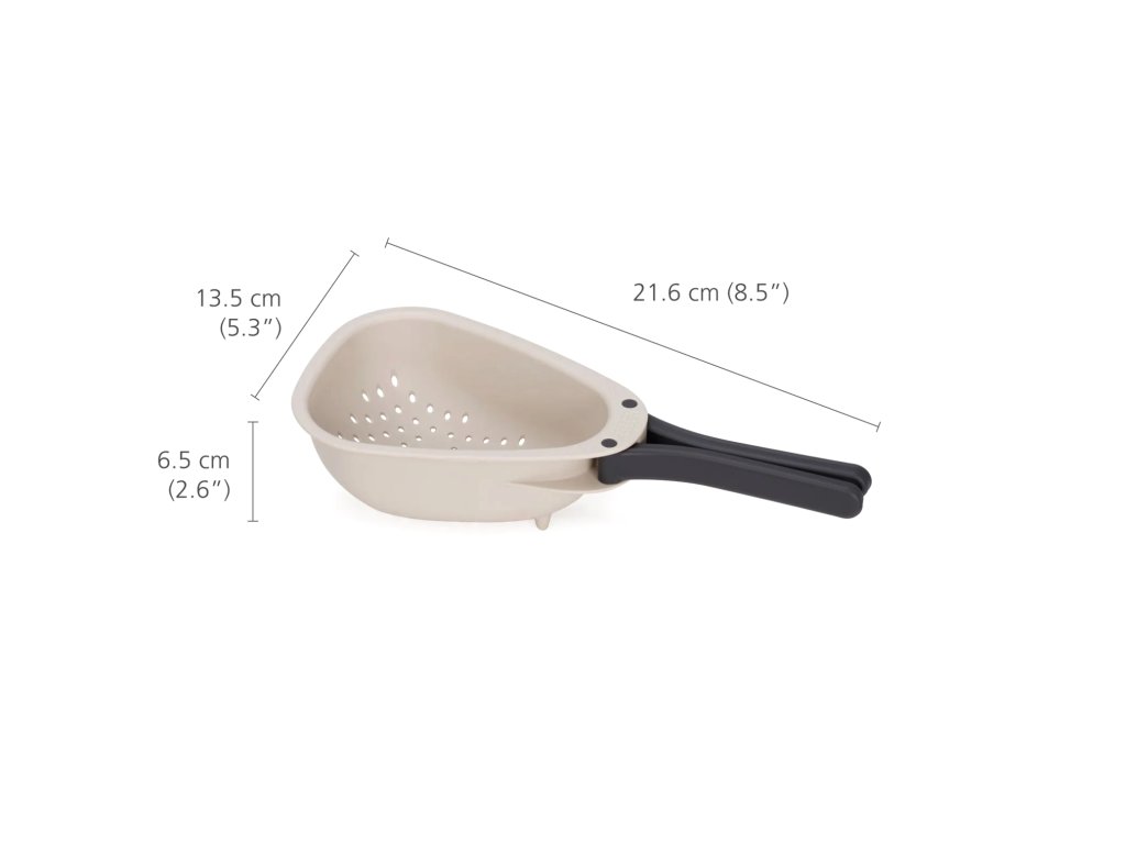 Tento priestorovo úsporný cedník je ideálny na drobné potraviny, ako sú bobuľoviny a letné ovocie, je vybavený skladacou rukoväťou pre úhľadné skladovanie.