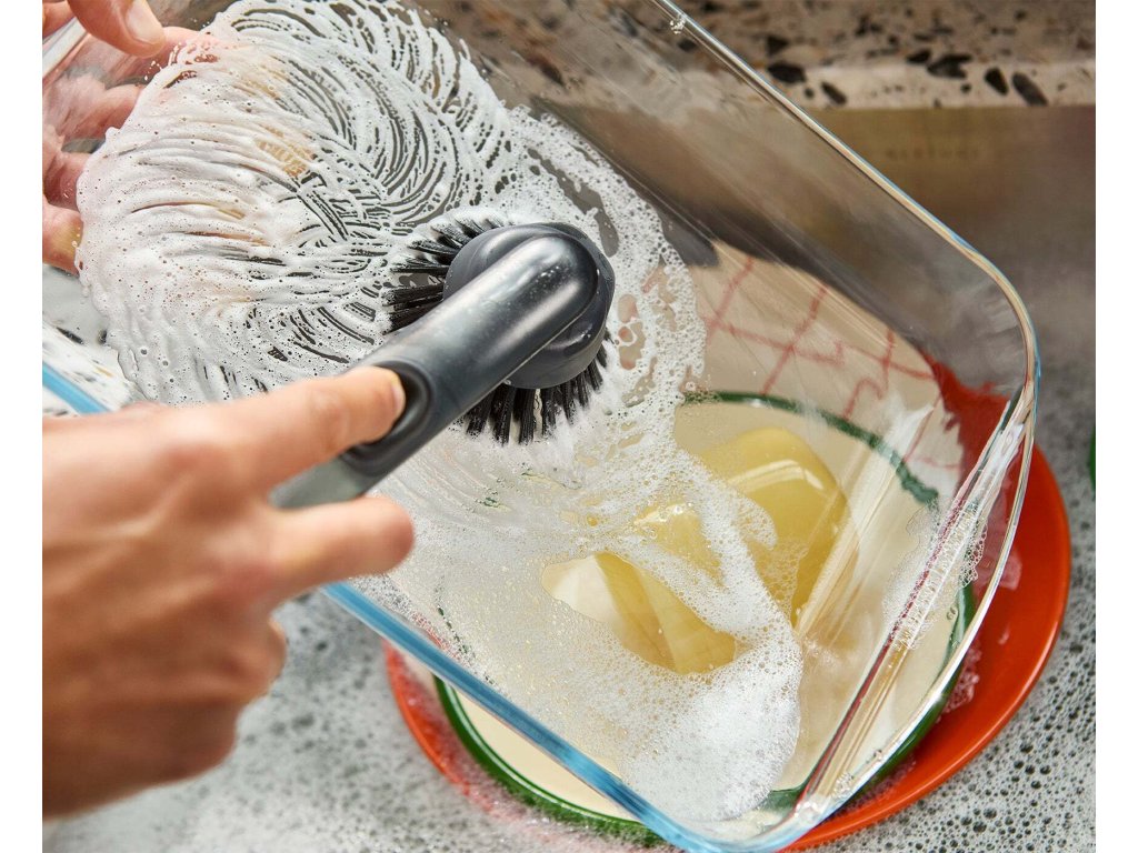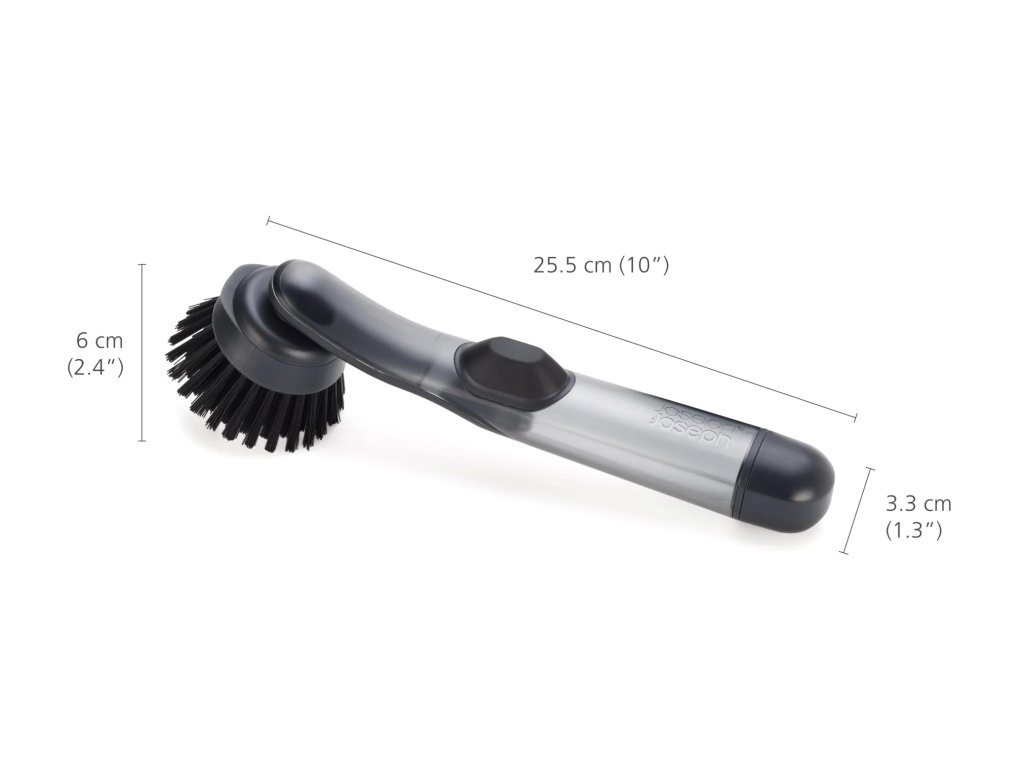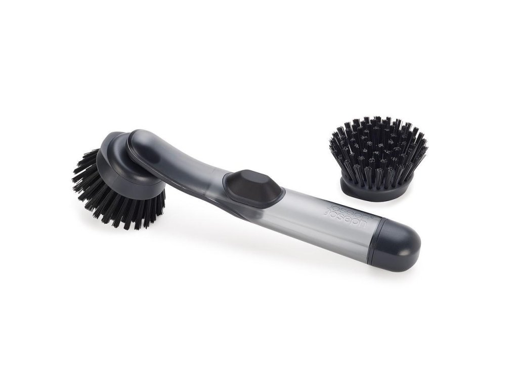 Kefka na riad SinkTech dávkuje potrebné množstvo umývacieho prostriedku jednoduchým stlačením horného tlačidla. Má odolné štetiny pre efektívne čistenie a je vybavená integrovanou škrabkou, vďaka ktorej jednoducho vyčistíte každý riad. Súčasťou je aj náhradná vymeniteľná hlavica.