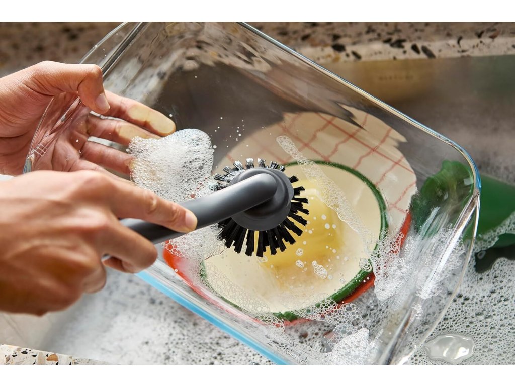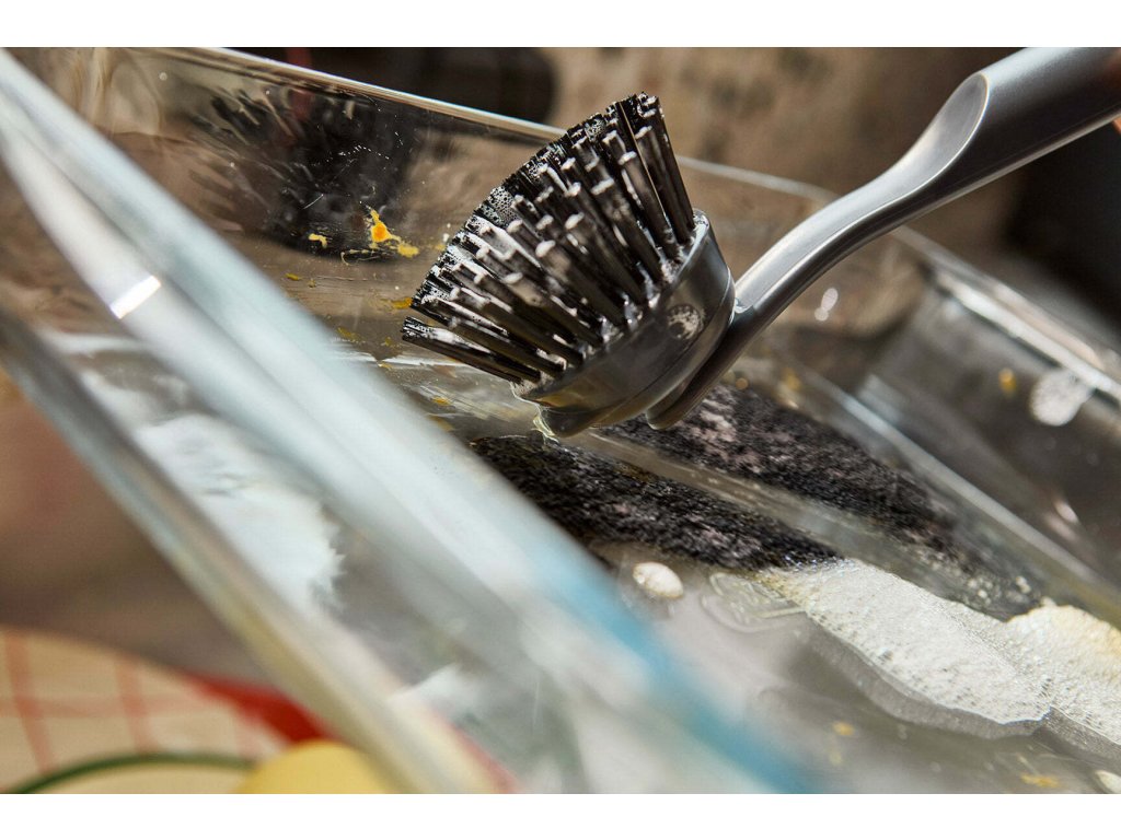Kefka na riad SinkTech s odolnými štetinami na efektívne čistenie je vybavená integrovanou škrabkou, vďaka ktorej ľahko vyčistíte akýkoľvek riad. Súčasťou je aj náhradná vymeniteľná hlavica.