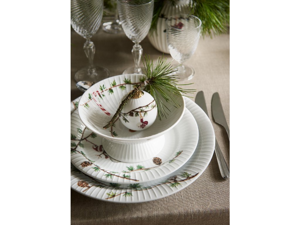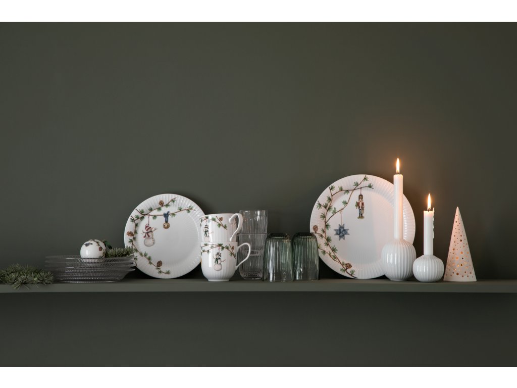 Vytvorte si to najkrajšie vianočné stolovanie s jedinečným vianočným servisom Hammershøi Christmas, ktorý je citlivou kombináciou tradičných Vianoc s moderným nádychom. Porcelánový tanier je elegantne zdobený smrekovou vetvičkou a roztomilými vianočnými motívmi - rolničkou a snehuliakom, ktoré sa hodia na oslavu Vianoc každý deň v decembri. Očarujúce ilustrácie od uznávanej umelkyne Rikke Jacobsen spolu s elegantným vrúbkovaním, typickým pre kolekciu Hammershøi, spoločne vytvárajú veľmi jedynečnú vianočnú atmosféru.