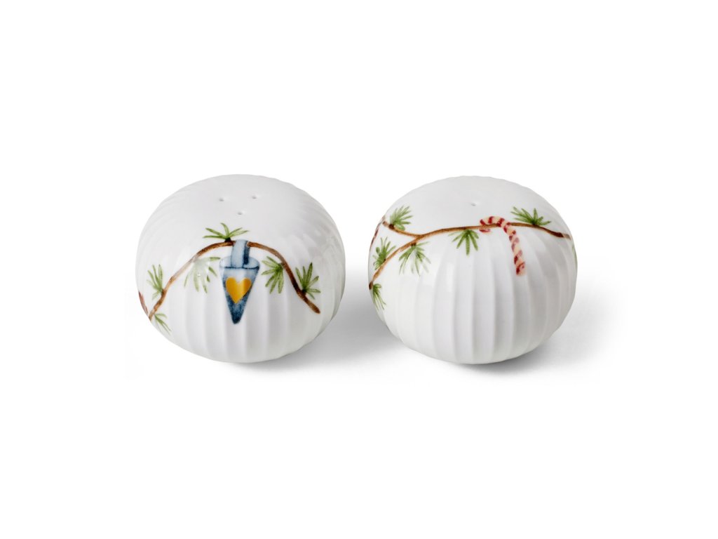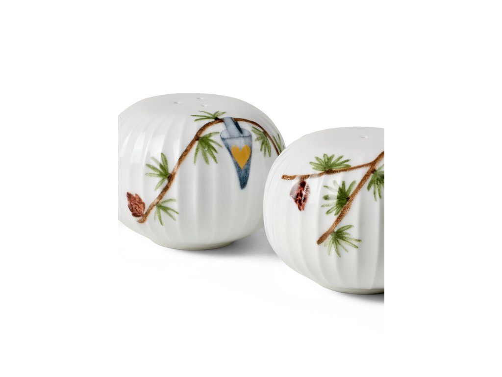 Rozšírte svoju zbierku porcelánového riadu Kähler o túto krásnu sadu koreničky a soľničky z vianočnej kolekcie Hammershøi Christmas, ktorá je ideálna pre elegantnú vianočnú večeru. Krásne a detailné vianočné motívy na jedinečnej sade koreničky a soľničky vytvorila umelkyňa Rikke Jacobsen, ktorej charakteristické ilustrácie zahŕňajú cukrové kornútiky, anjelov, vlašské orechy, vtáčiky alebo hviezdy. Použite túto krásnu sadu na oživenie všetkých vašich vianočných stretnutí. Doplňte ju o zodpovedajúce taniere a misky z kolekcie Hammershøi Christmas alebo ju skombinujte s klasickými bielymi taniermi Hammershøi.