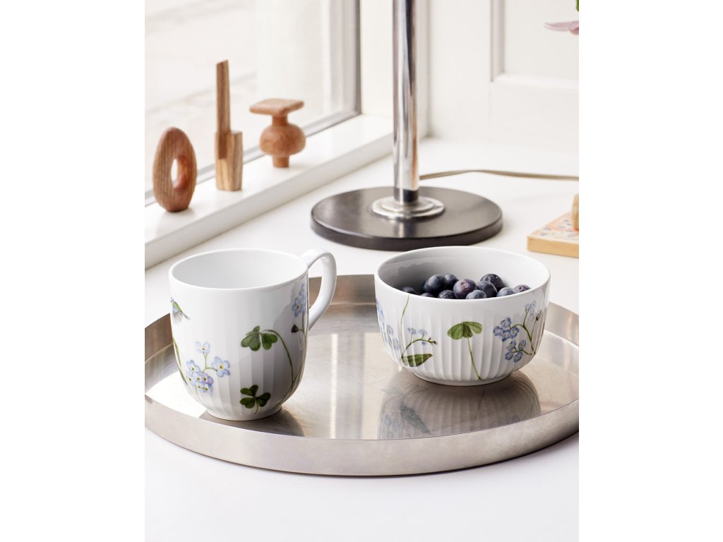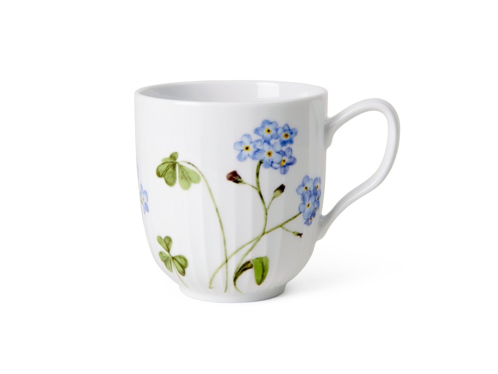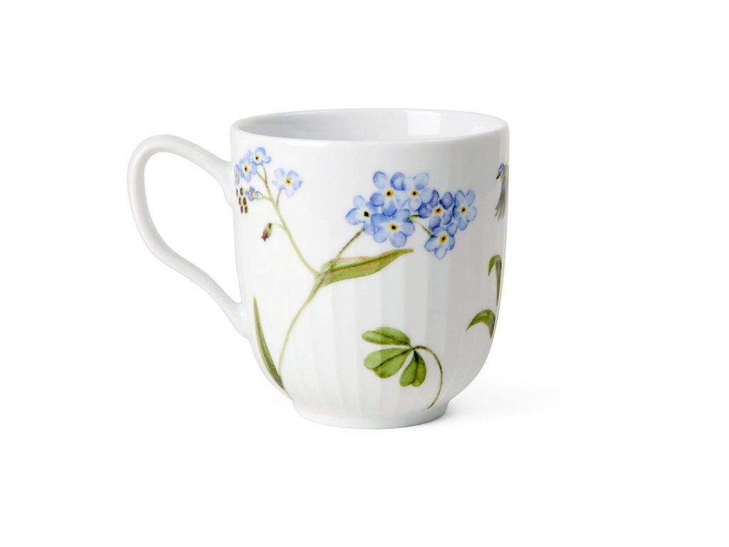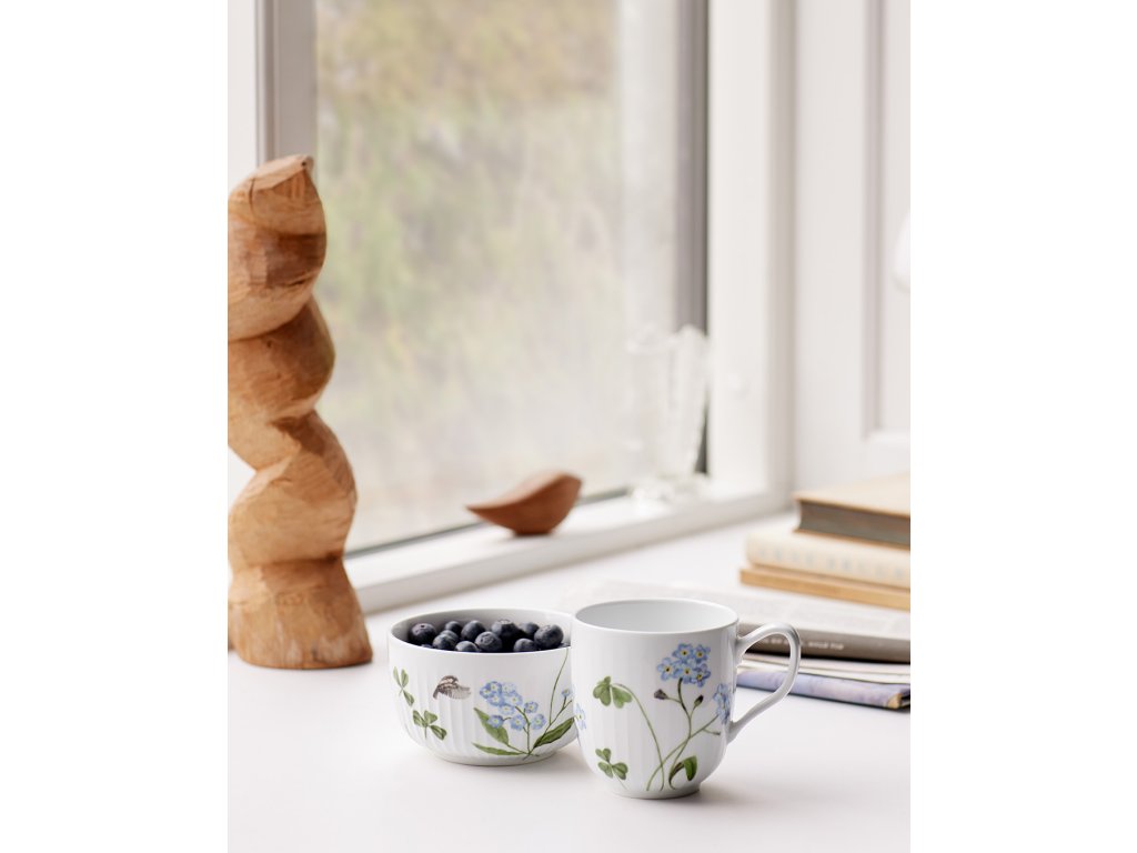 Hrnček o objeme 330 ml je zdobený krásnou kvetinou pomienky a roztomilou modrienkou. Autorkou akvarelových ilustrácií je umelkyňa Rikke Jacobsen, ktorá sa pri tvorbe inšpirovala magickými tvarmi, farbami a emóciami dánskeho leta.