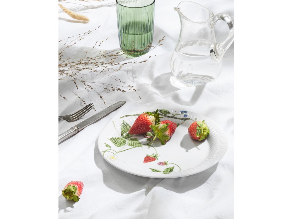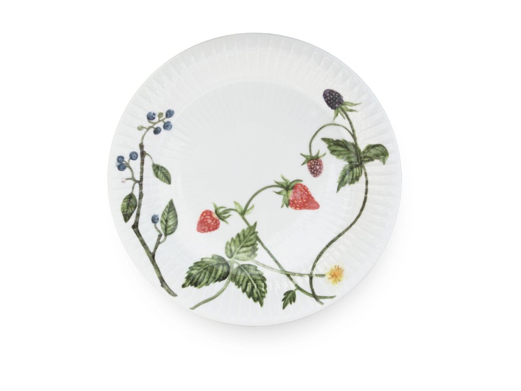 Porcelánový tanier s priemerom 22 cm zdobí vetvička čučoriedok, dozrievajúce černice a jahody. Tanier ladí s ostatnými kúskami z rovnakej kolekcie – a tiež sa krásne kombinuje s ďalšími kolekciami. Ľahko si ho predstavíte ako základ na servírovanie letnej klasiky, ako je jahodový koláč, čerstvý záhradný šalát alebo zemiaky s maslom a množstvom pažítky. Autorkou akvarelových ilustrácií je umelkyňa Rikke Jacobsen, ktorá sa pri tvorbe inšpirovala prírodou a ročným obdobím okolo nás.